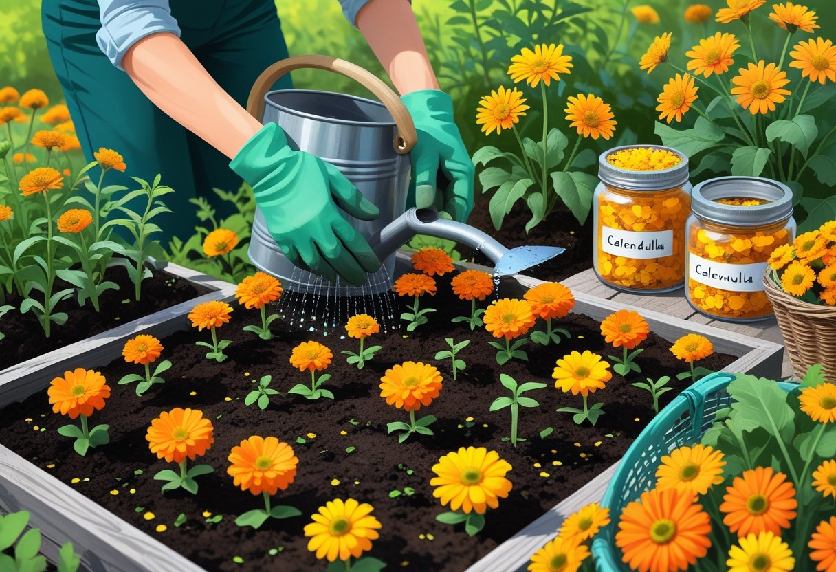 Para mais detalhes sobre o preparo da terra e cuidados com a calêndula, veja o guia de cultivo da calêndula.