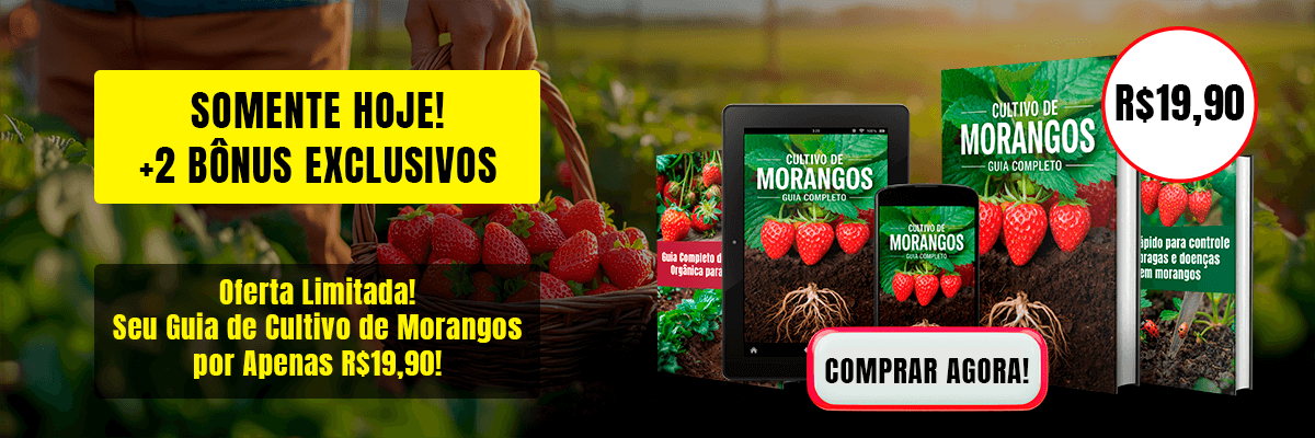 Essa adubação ajuda a manter a umidade, aumenta a atividade microbiana e fornece nutrientes essenciais para o desenvolvimento do morangueiro sem causar desequilíbrio químico.